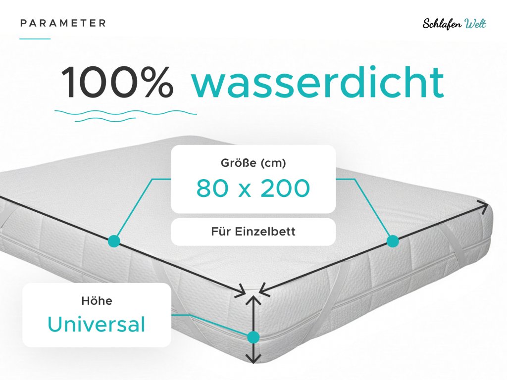 Matratzenschonerist wichtiger als Sie denken. Jeder Mensch, ob Kind oder Erwachsener, schwitzt von Natur aus. In der Nacht schwitzen wir bis zu einem Liter Schweiß, der in die Bettwäsche und den Matratzenkern eindringt. Der Matratzenschoner erhöht die allgemeine Hygiene des Bettes. Darüber hinaus schützt es vor mechanischen Beschädigungen, Schmutz, Milben, Schweiß und Urin. Dies ist ein großartiger Helfer für Kinderbetten oder erste Betten. Sie ist auch für Erwachsene als gewöhnlicher Matratzenschoner geeignet, für ältere Menschen oder für Personen, die lange bettlägerig sind. Der wasserdichte Matratzenschoner bildet eine schützende und flüssigkeitsdichte Schicht. Sie brauchen keine Angst zu haben, auf einer Plastikfolie zu schlafen, denn die oberste Schicht des Matratzenschoners besteht aus Mikrofaser, die sanft zur Haut ist und sich angenehm anfühlt.