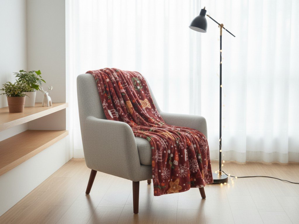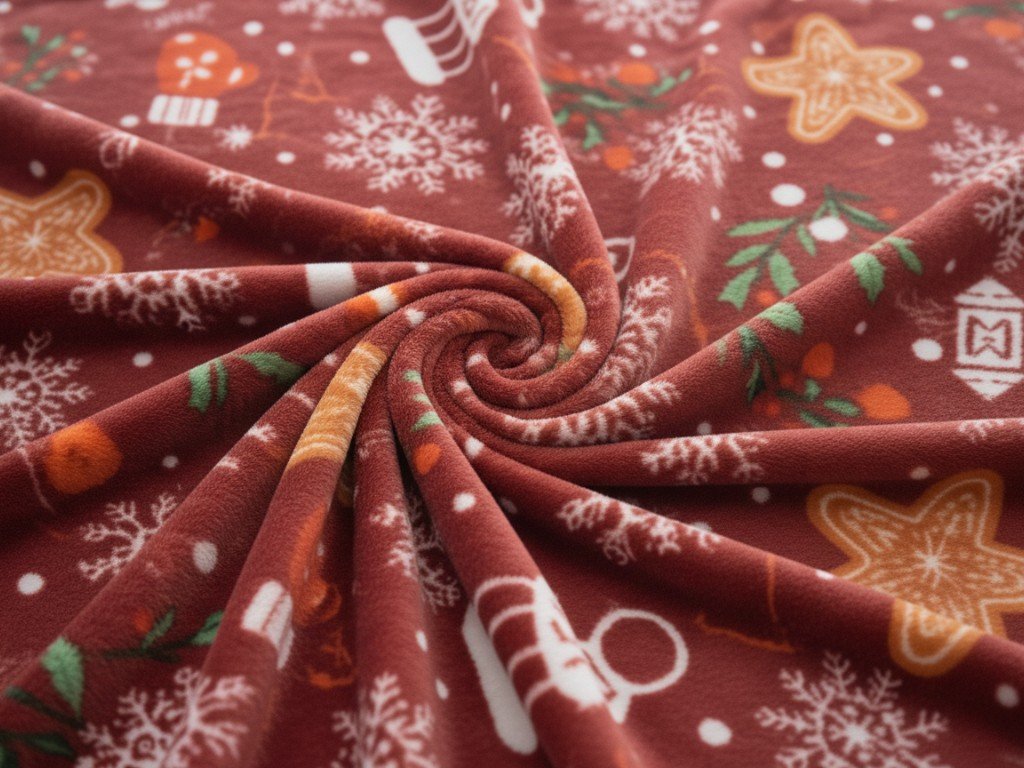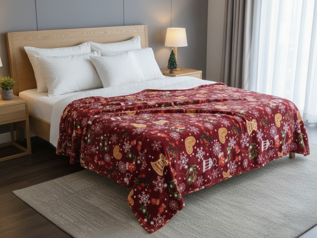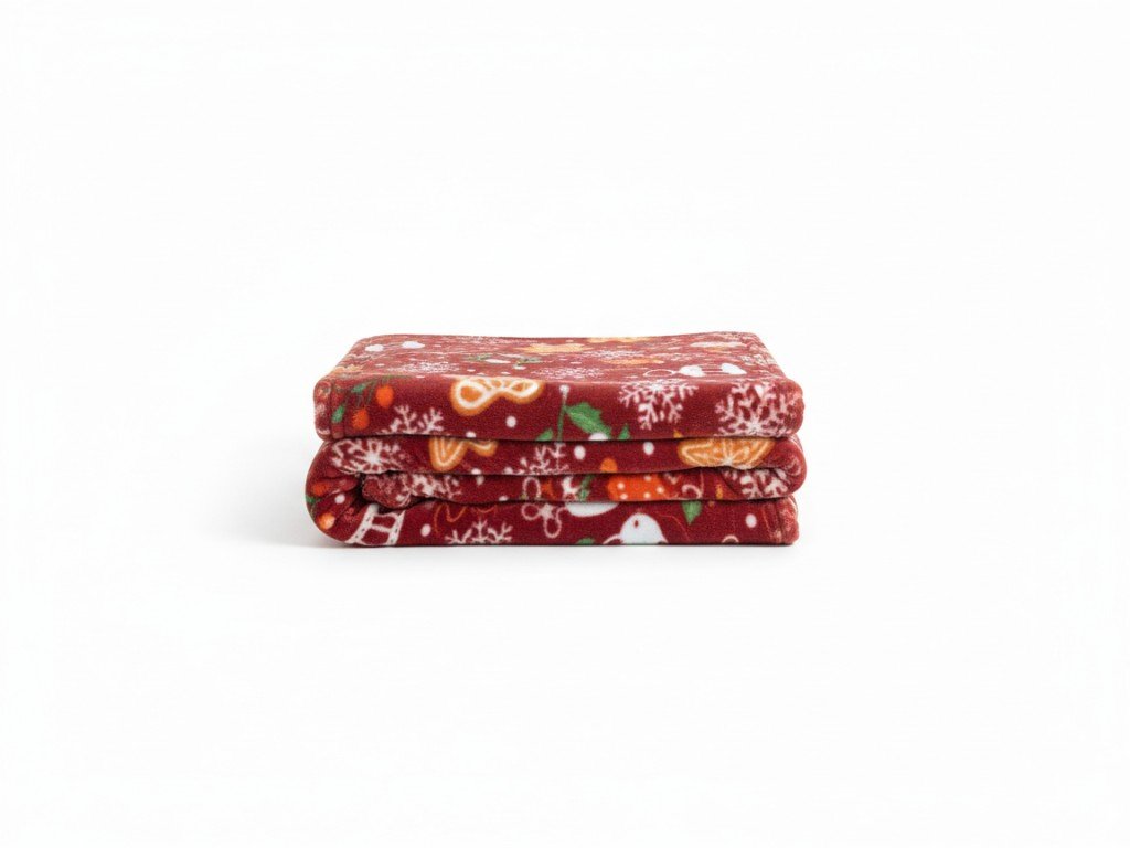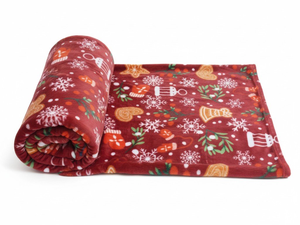 Weihnachtliche Mikroplüsch-Sherpa-Decke GINGERBREAD HEART, rot