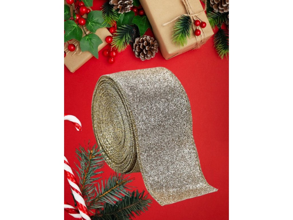 Weihnachtliches Band FESTIVE 5 cm x 2 m, gold-silberfarben