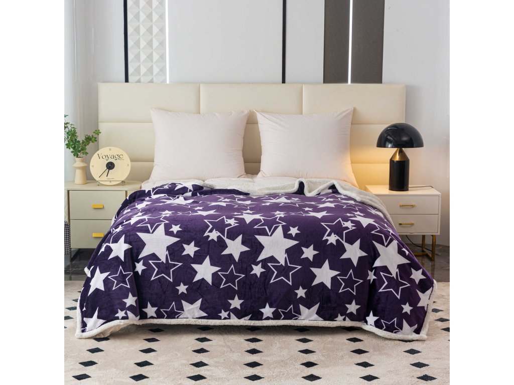 Weihnachts-Mikroplüsch-Lammdecke STARS, lila