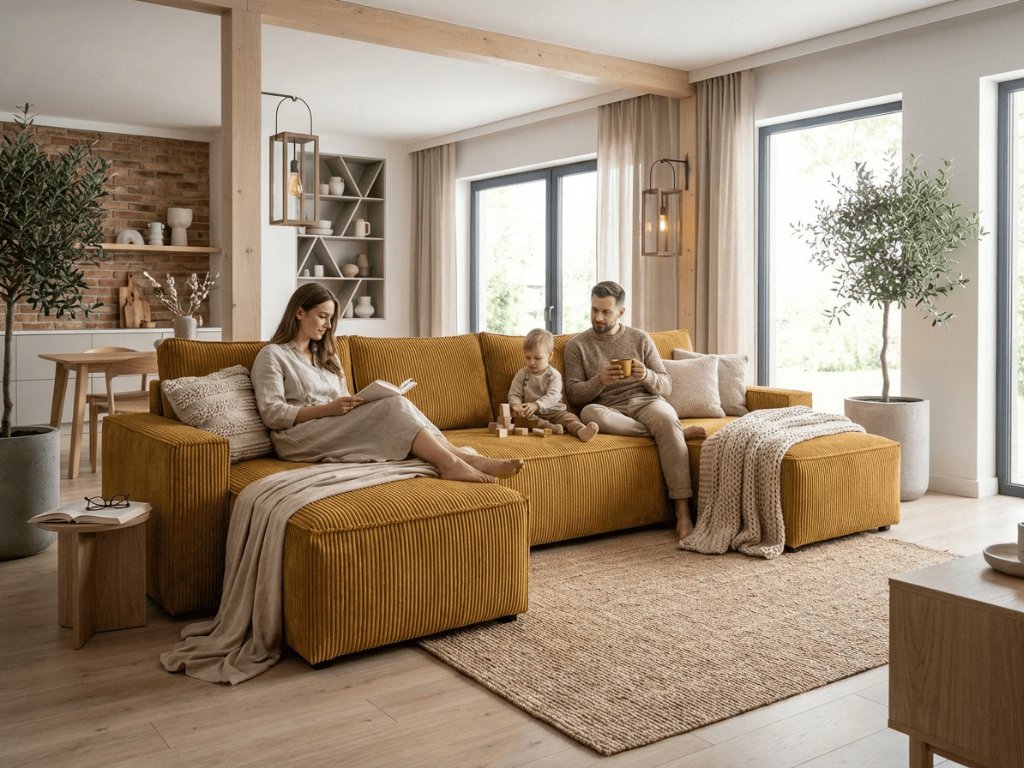 Wohnlandschaft in U-Form SMART COSARO 295x140 cm, senfgelb
